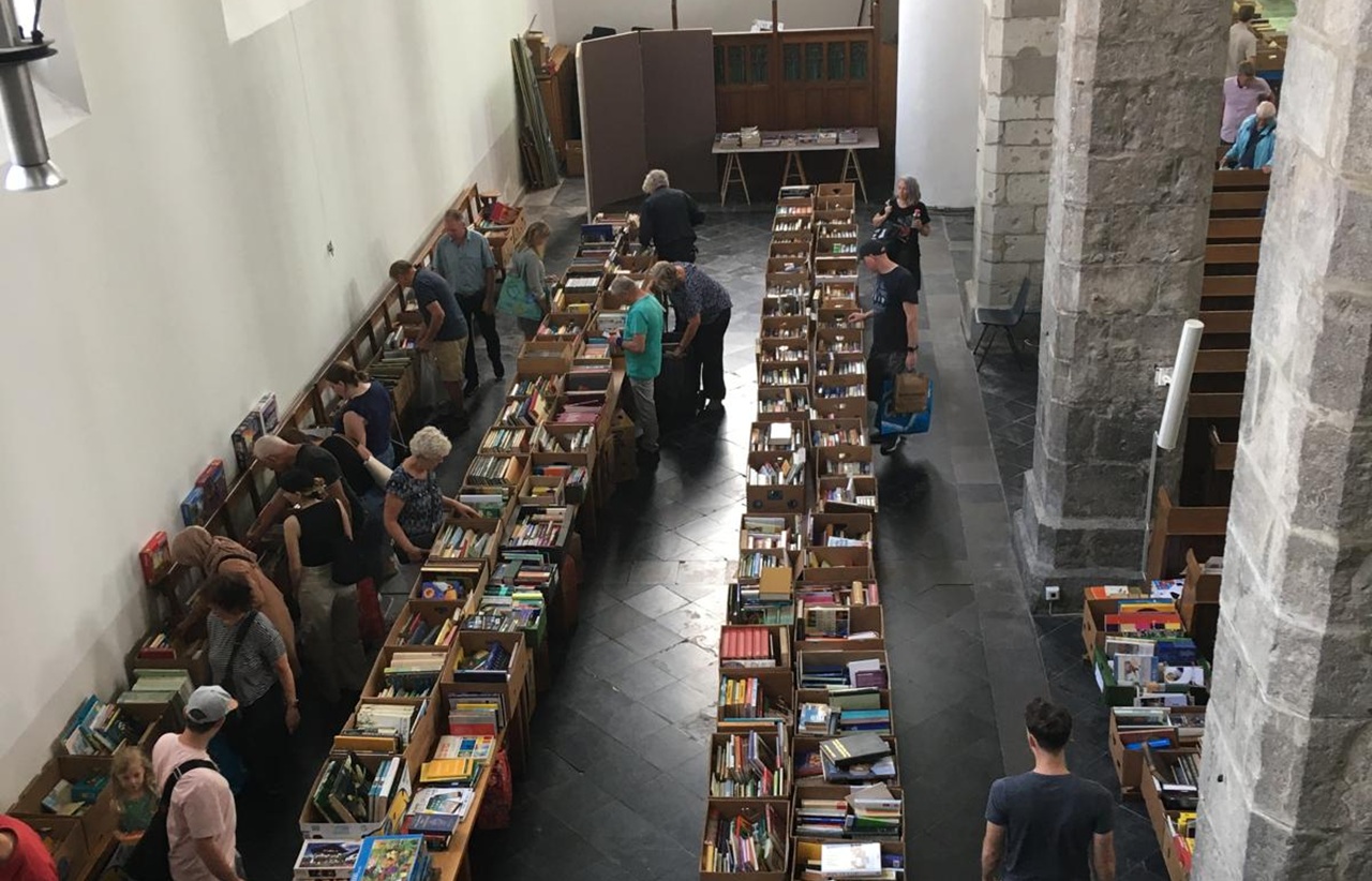 De opbrengst van de boekenmarkt komt ten goede aan het onderhoud van het kerkgebouw.