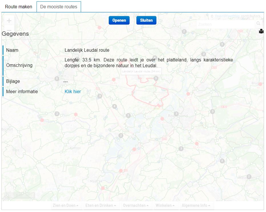 Via de fietsrouteplanner kun je, naast het uitstippelen van je eigen route, ook kiezen voor bestaande routes. Hieronder lees je hoe je eenvoudig een van deze op maat uitgezette routes kunt kiezen in de fietsrouteplanner en uiteindelijk kunt bewaren. Je kunt er ook voor kiezen om direct terug te gaan naar de fietsrouteplanner Noord- en Midden-Limburg.