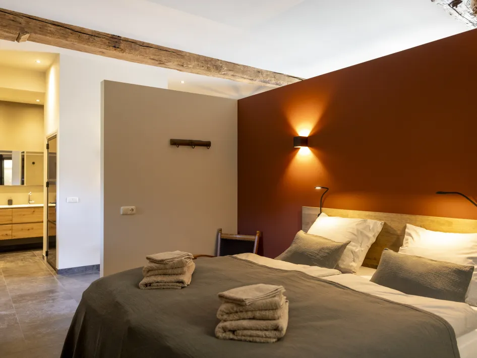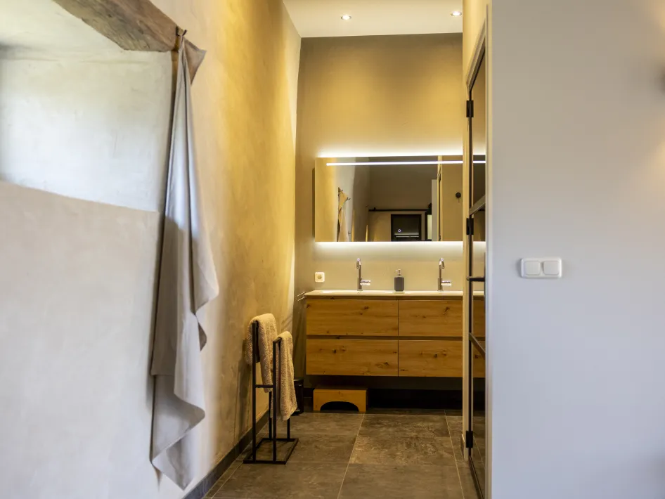 De comfortabele slaapkamer biedt direct toegang tot een badkamer met een ontspannende inloopregendouche. Buiten genieten gasten op hun privéterras van het uitzicht over de monumentale binnenplaats of ontspannen zij in de gezamenlijke buitenkamer met houtkachel. Gelegen aan het Natura 2000-gebied 'Het Leudal', vormen deze woningen de perfecte uitvalsbasis voor liefhebbers van natuur, cultuurhistorie en rust. Een bijzonder verblijf!
